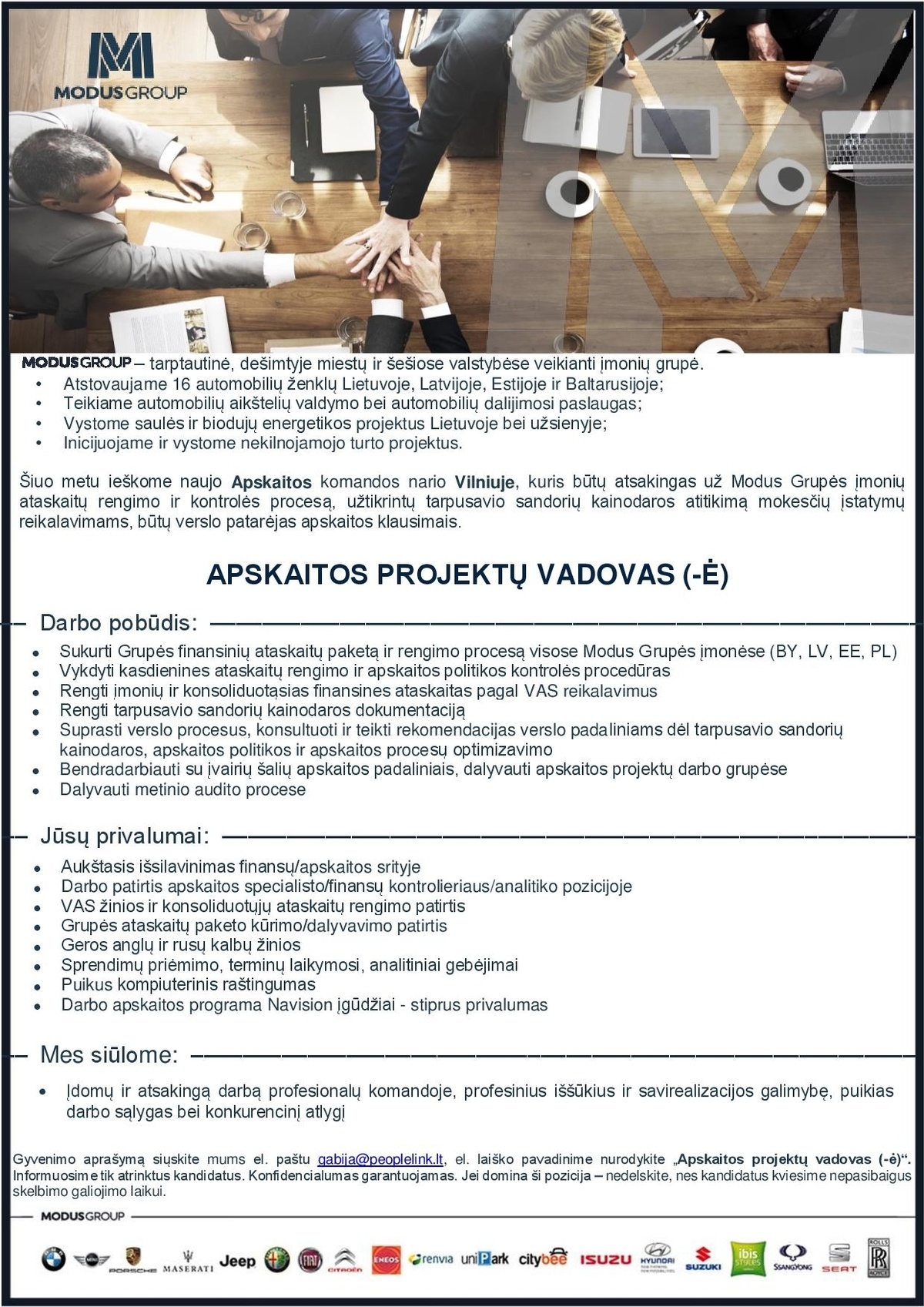 People Link, UAB APSKAITOS PROJEKTŲ VADOVAS (-Ė)