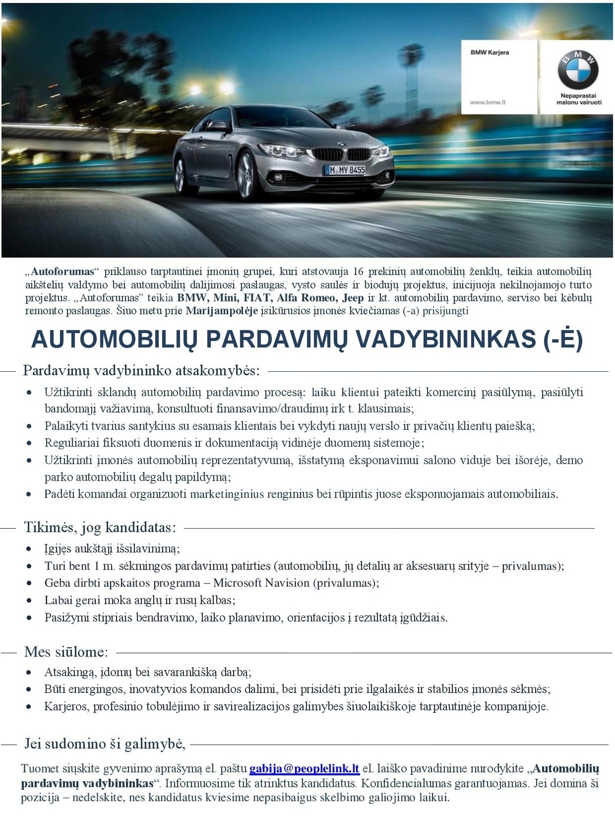 People Link, UAB AUTOMOBILIŲ PARDAVIMŲ VADYBININKAS (-Ė)