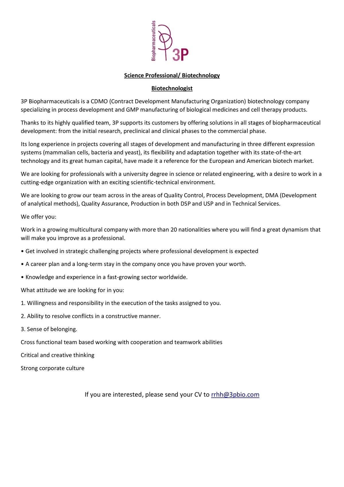 If you are interested, please send your CV to rrhh[at]3pbio.com
