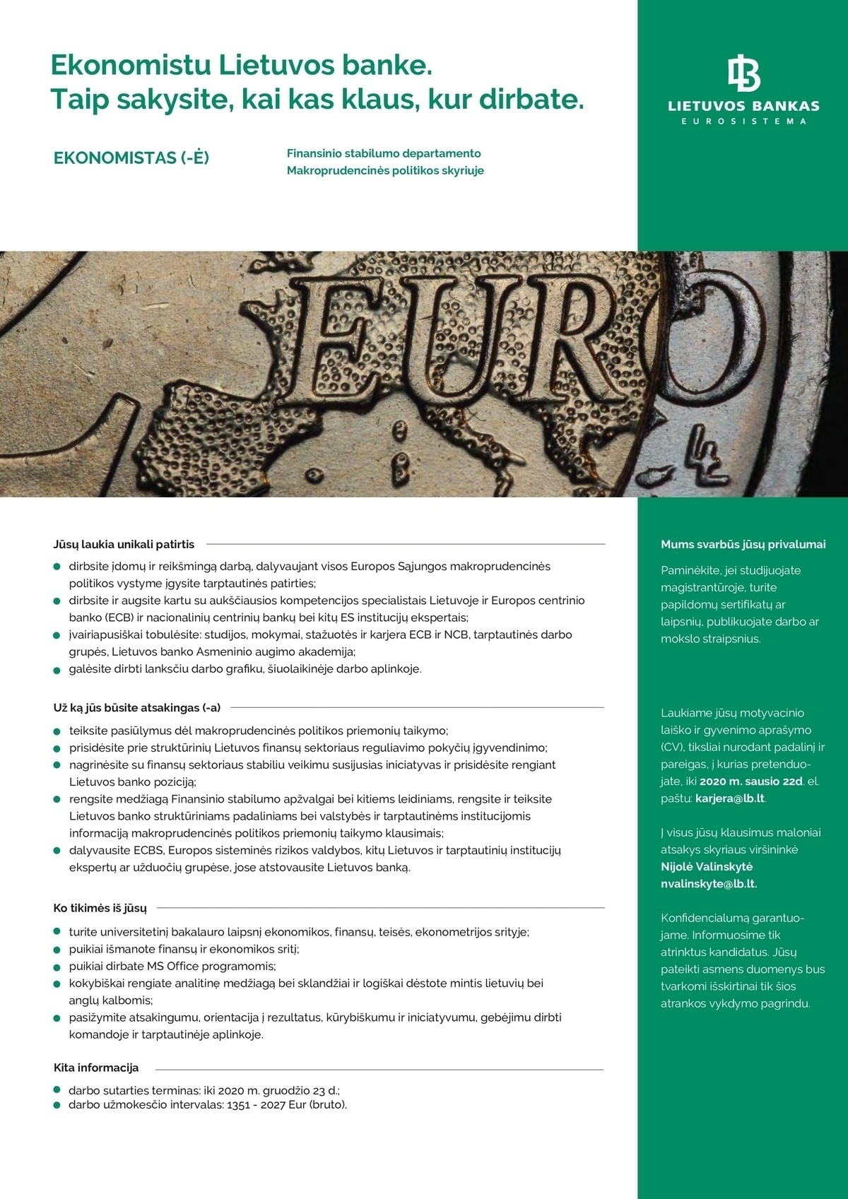 Laukiame jūsų motyvacinio laiško ir gyvenimo aprašymo (CV), tiksliai nurodant padalinį ir pareigas, į kurias pretenduojate, iki 2020 m. sausio 22d.