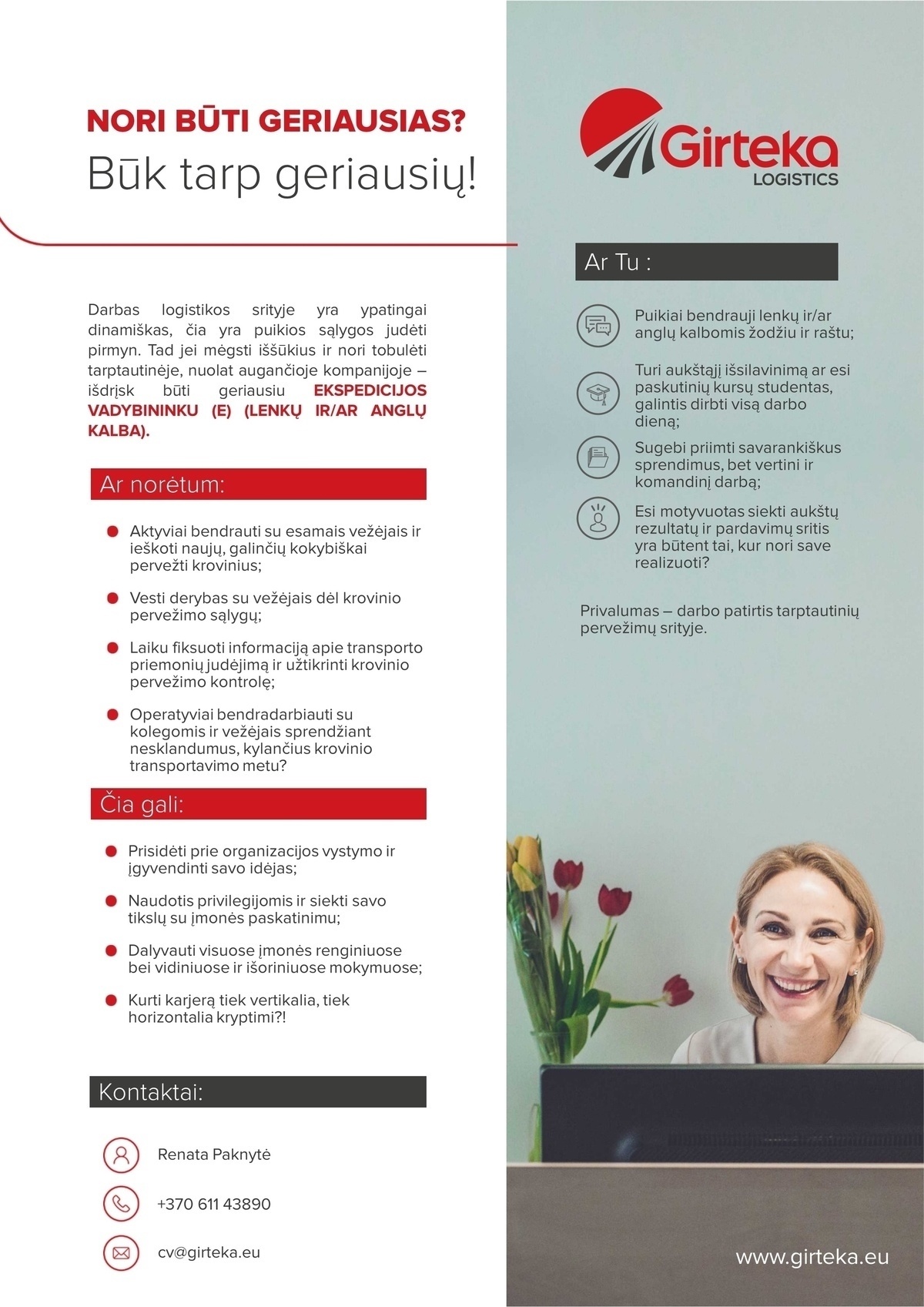 EKSPEDICIJOS VADYBININKAS (-Ė) (LENKŲ IR/AR ANGLŲ KALBA)