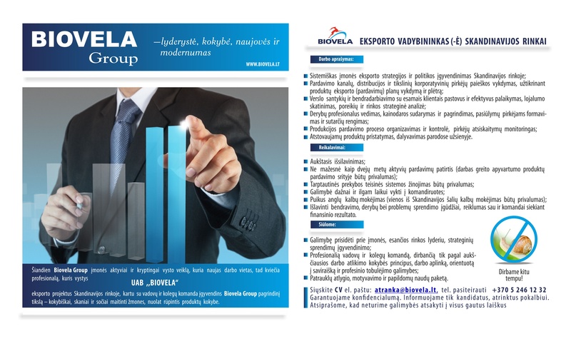 Biovela Group, UAB Eksporto vadybininkas Skandinavijos rinkai
