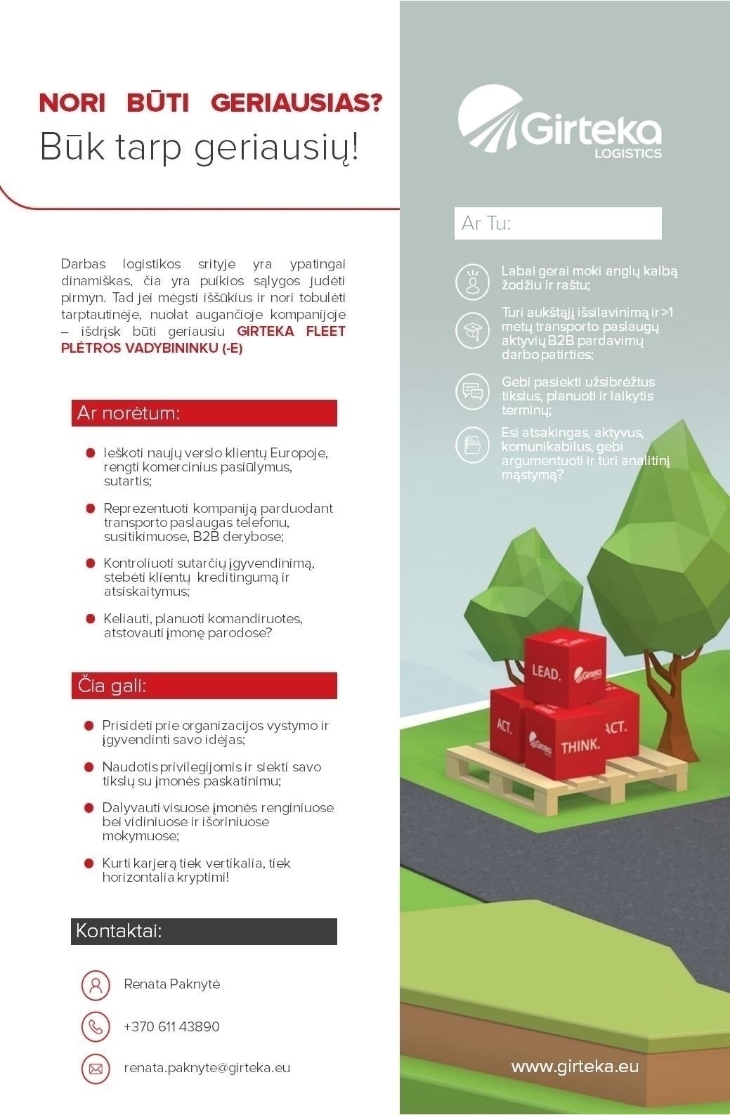 Girteka logistics, UAB GIRTEKA FLEET PLĖTROS VADYBININKAS (-Ė)