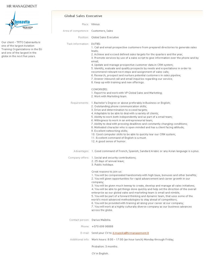Tai jau nebegaliojantis darbo skelbimas