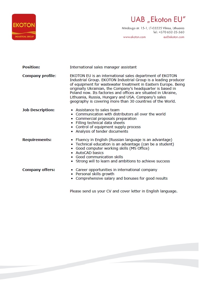 International sales manager assistant