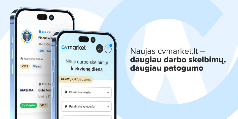 Daugiau nei du dešimtmečius veikiančio darbo skelbimų portalo pagrindinis tikslas – suvesti ieškančius darbo su darbdaviais, todėl cvmarket.lt atnaujinimu siekiama pagerinti visų vartotojų patirtį.