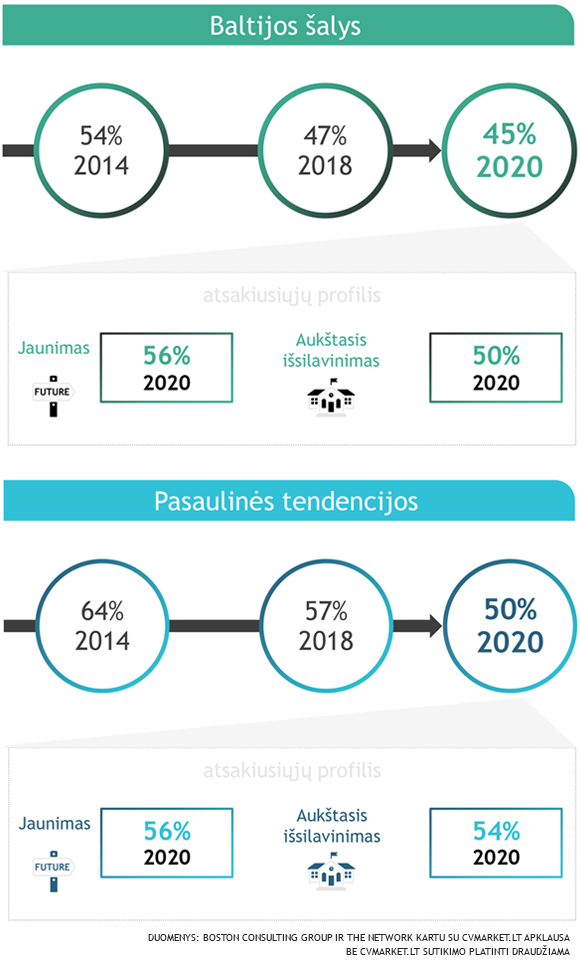 Kokia dalis Baltijos šalių gyventojų norėtų dirbti užsienyje?