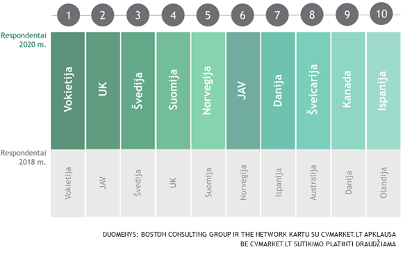 Kalbant apie šalis, kuriose Baltijos šalių gyventojai norėtų dirbti, situacija išliko panaši, kaip ir ankstesniais metais. Dauguma planuotų vykti į UK, Vokietiją bei Skandinavijos šalis. JAV iš antros vietos 2018 m. nukrito į 6 -tą 2020 m.