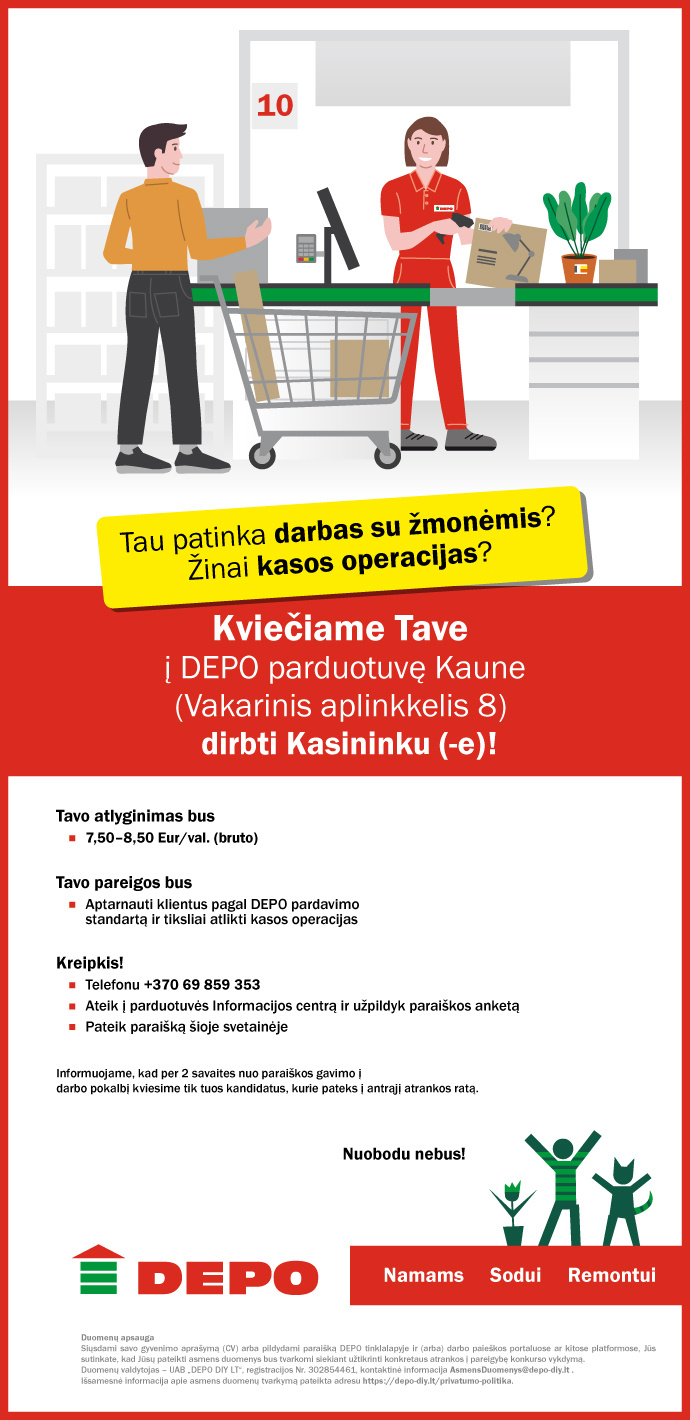 Aptarnauti klientus pagal DEPO pardavimo standartą ir tiksliai atlikti kasos operacijas