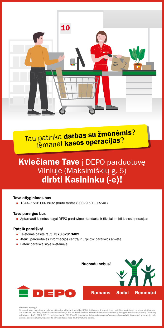 Aptarnauti klientus pagal DEPO klientų aptarnavimo ir pardavimo standartą ir tiksliai atlikti kasos operacijas