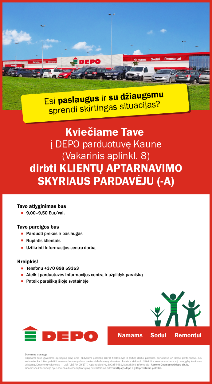 Klientų aptarnavimo skyriaus pardavėjas (-a) Kaune (Vakarinis aplinkkelis 8)