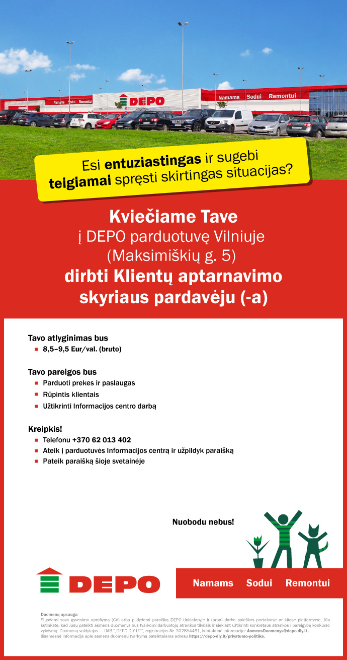 Pardavėjas (-a) statybinių medžiagų arba santechnikos skyriuose Vilniuje (Maksimiškių g. 5)
