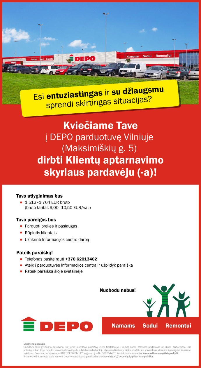 Klientų aptarnavimo skyriaus pardavėjas (-a) Vilniuje (Maksimiškių g. 5)