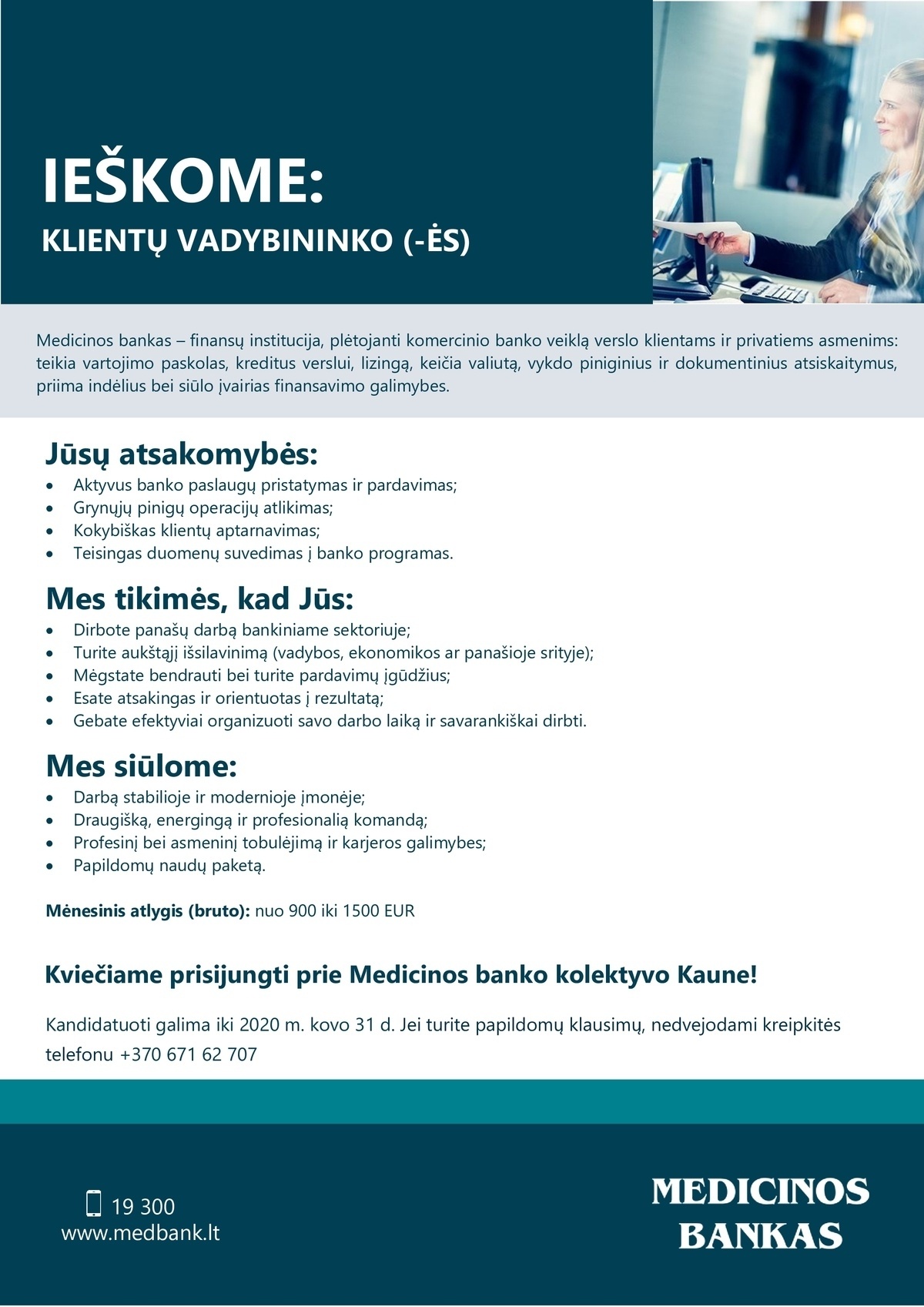 • Aktyvus banko paslaugų pristatymas ir pardavimas;
