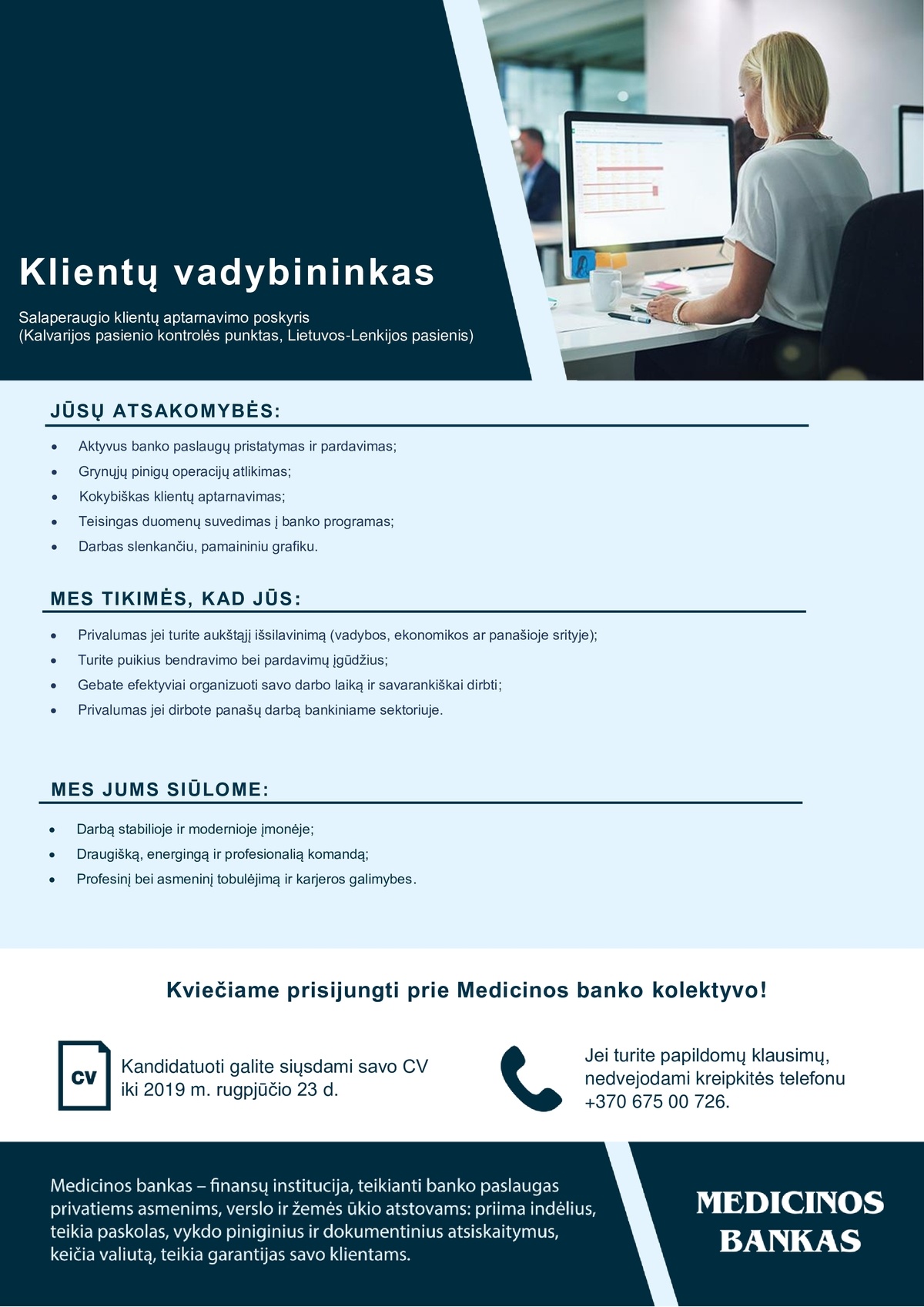 • Privalumas jei dirbote panašų darbą bankiniame sektoriuje.