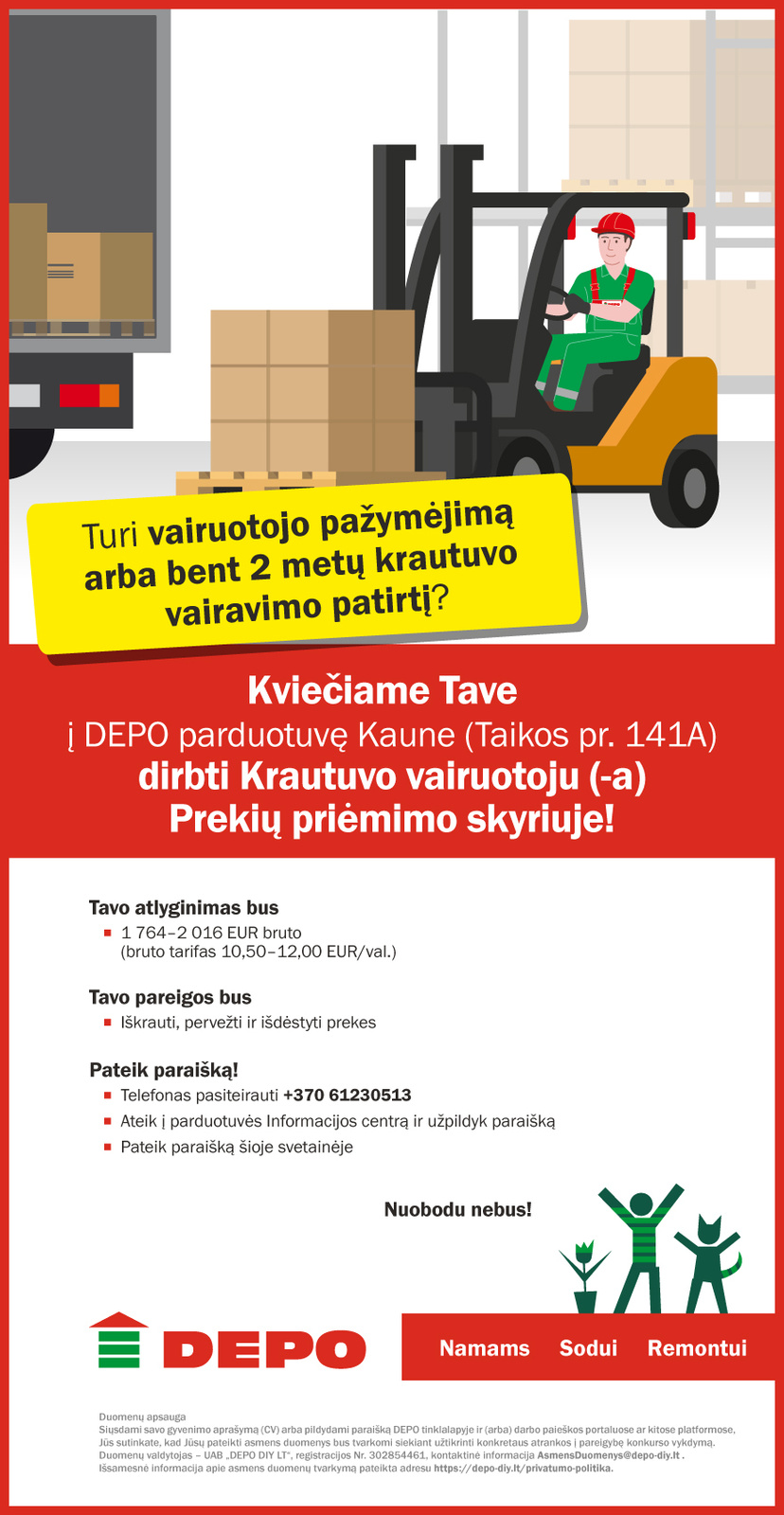 Krautuvo vairuotojas (-a) Prekių priėmimo skyriuje Kaune (Taikos pr. 141a)