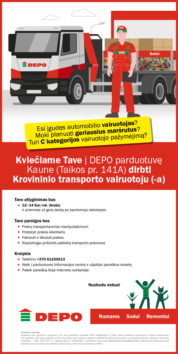 Krovininio transporto vairuotojas (-a) Kaune (Taikos pr. 141a)