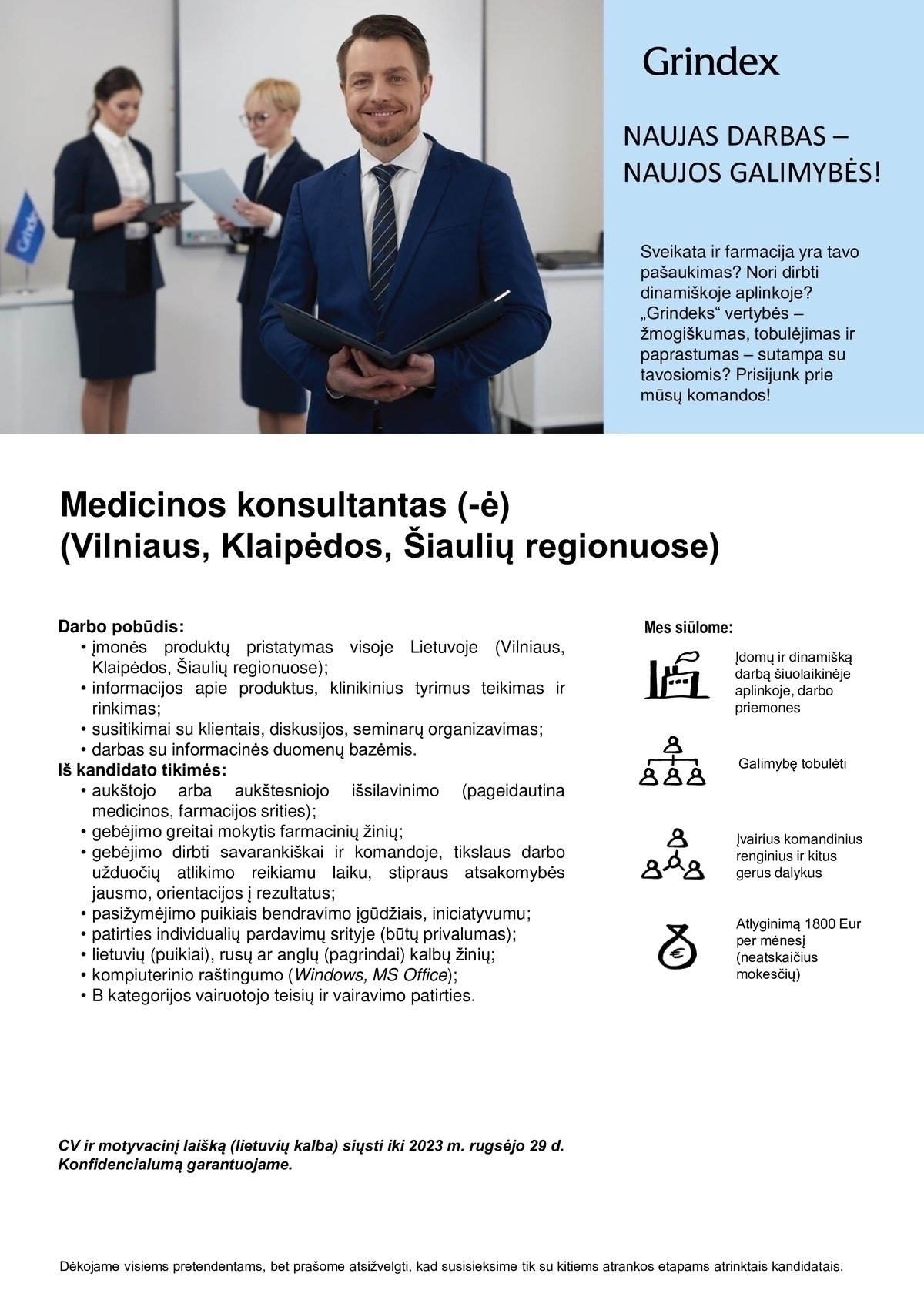 Medicinos konsultantas (-ė) (Vilniaus, Klaipėdos, Šiaulių regionai)