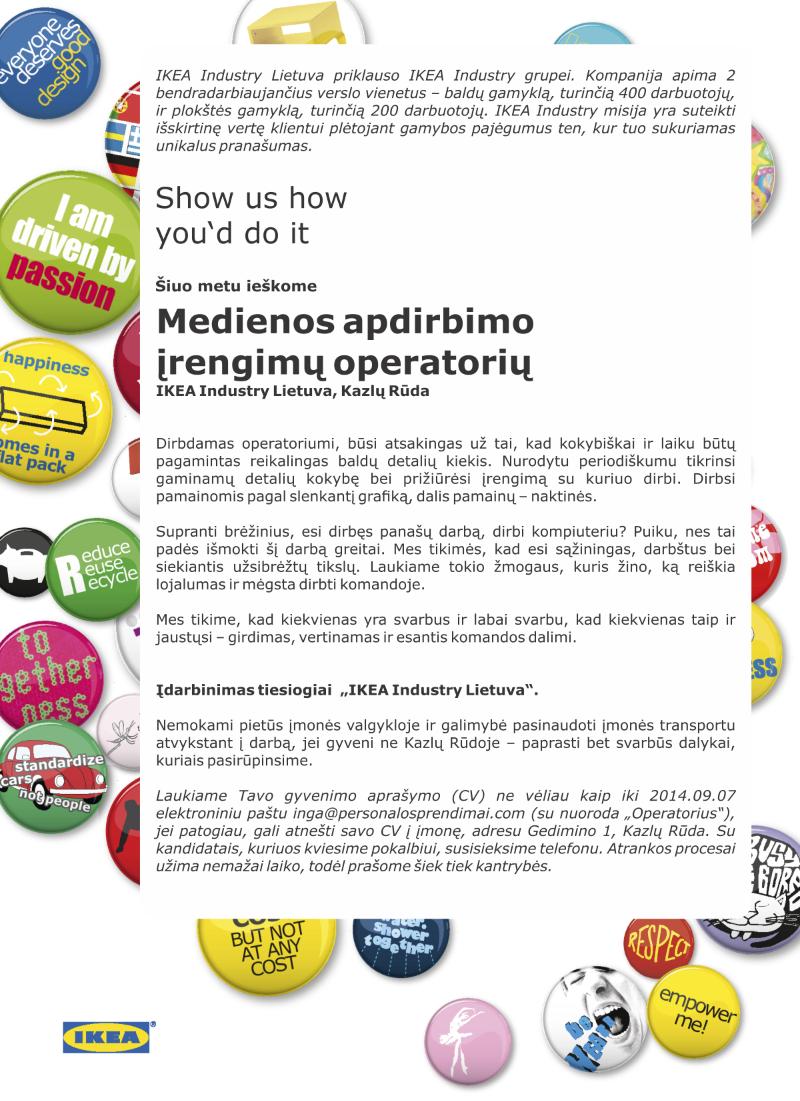 MEDIENOS APDIRBIMO ĮRENGINIŲ OPERATORIUS (-Ė) (IKEA Industry Lietuva)