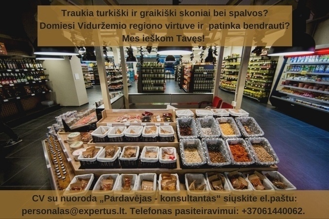 PARDAVĖJA (-AS) – KONSULTANTĖ (-AS) IŠSKIRTINIŲ MAISTO PRODUKTŲ PARDUOTUVĖJE