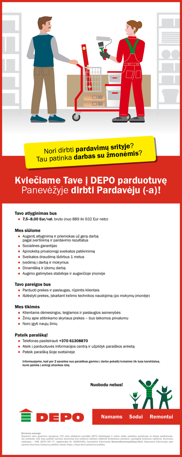 Valytoja (-s) - Salės darbuotoja (-s) Smėlynės g. 85, Panevėžyje