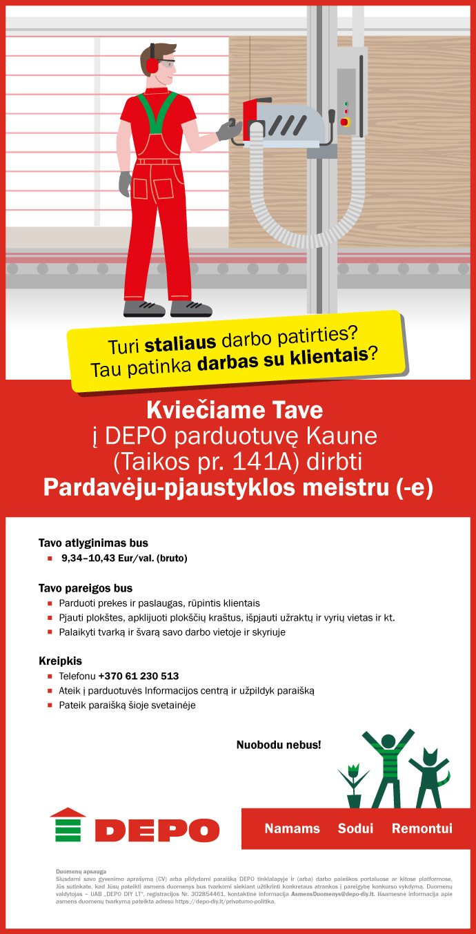 Pardavėjas (-a) paslaugų centro meistras (-ė) pjaustykloje Kaune (Taikos pr. 141A)