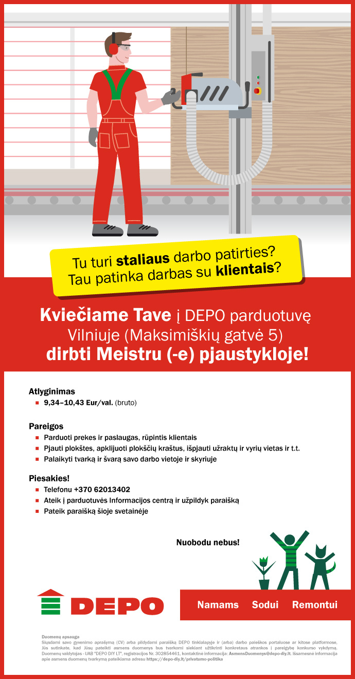 Pardavėjas (-a) paslaugų centro meistras (-ė) pjaustykloje Vilniuje (Maksimiškių g. 5)