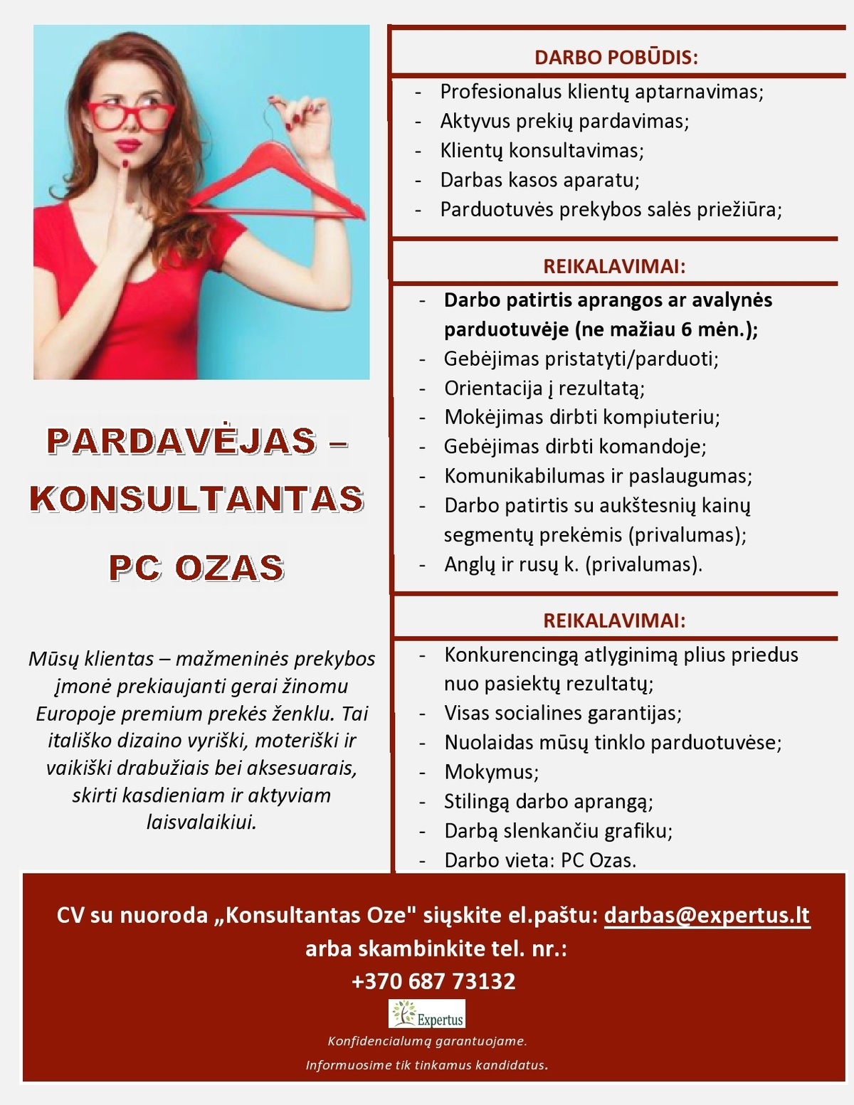 Expertus LT, UAB PARDAVĖJAS-KONSULTANTAS (Drabužių parduotuvėje PC Oze)