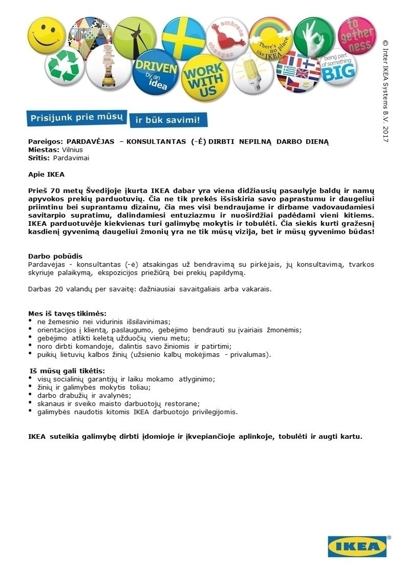 IKEA Lietuva (Felit) Pardavėjas - konsultantas (-ė), darbas nepilną darbo dieną