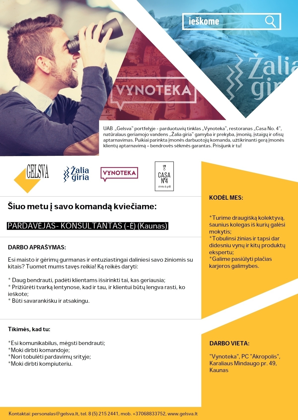 • pardavėjo-konsultanto darbas "Vynotekos" parduotuvėje Šiauliuose (0.5 etato);