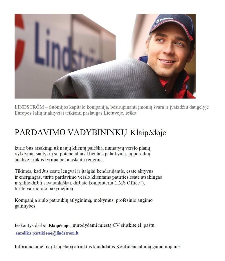 Lindstrom, UAB Pardavimo vadybininkas (-ė)