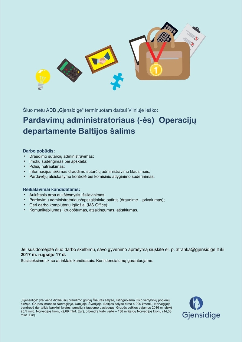 Gjensidige, ADB Pardavimų administratorius (-ė )