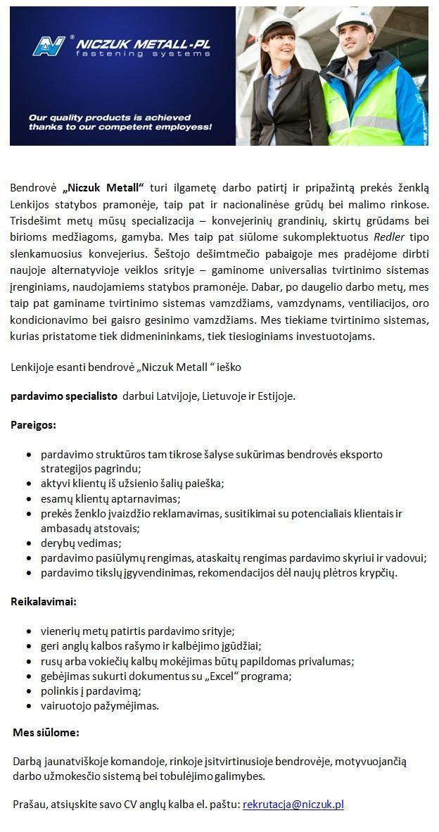 Pardavimų vadybininkas/specialistas