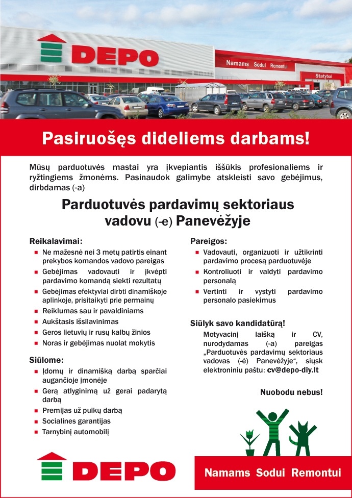 Parduotuvės pardavimų sektoriaus vadovo (-ės) Panevėžyje