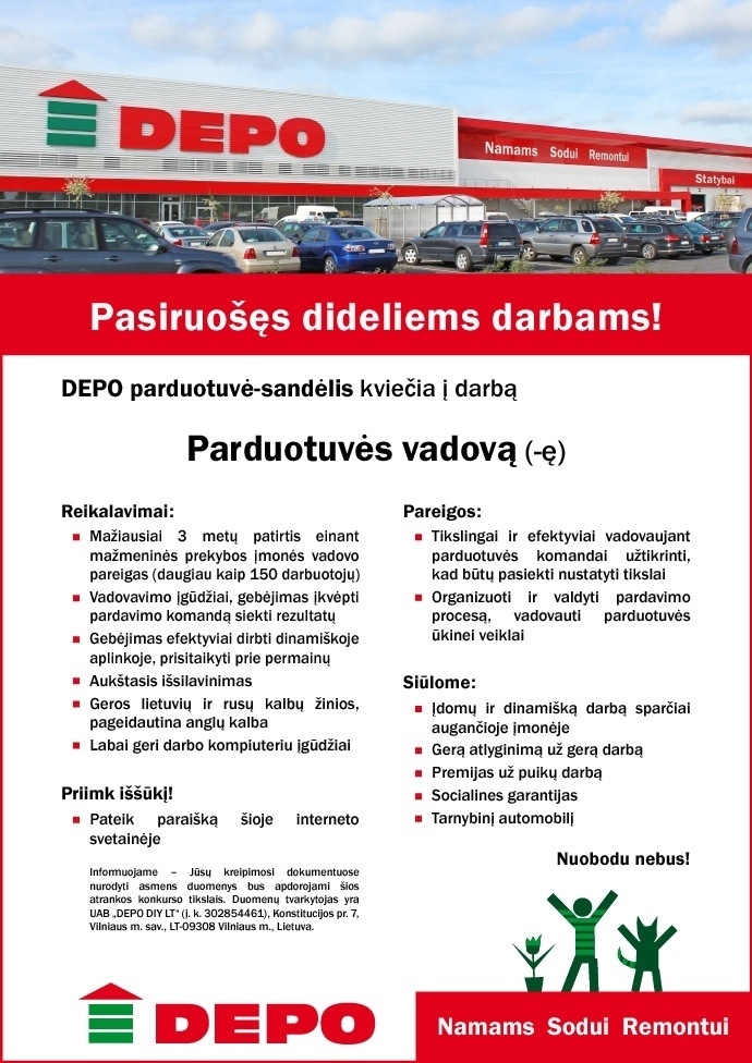 Parduotuvės vadovo (-ės) pareigas Kaune