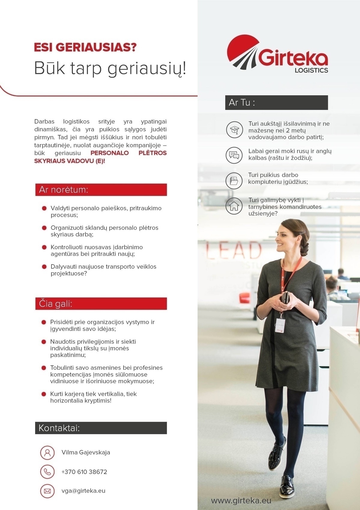 Girteka logistics, UAB PERSONALO PLĖTROS SKYRIAUS VADOVAS (-Ė)