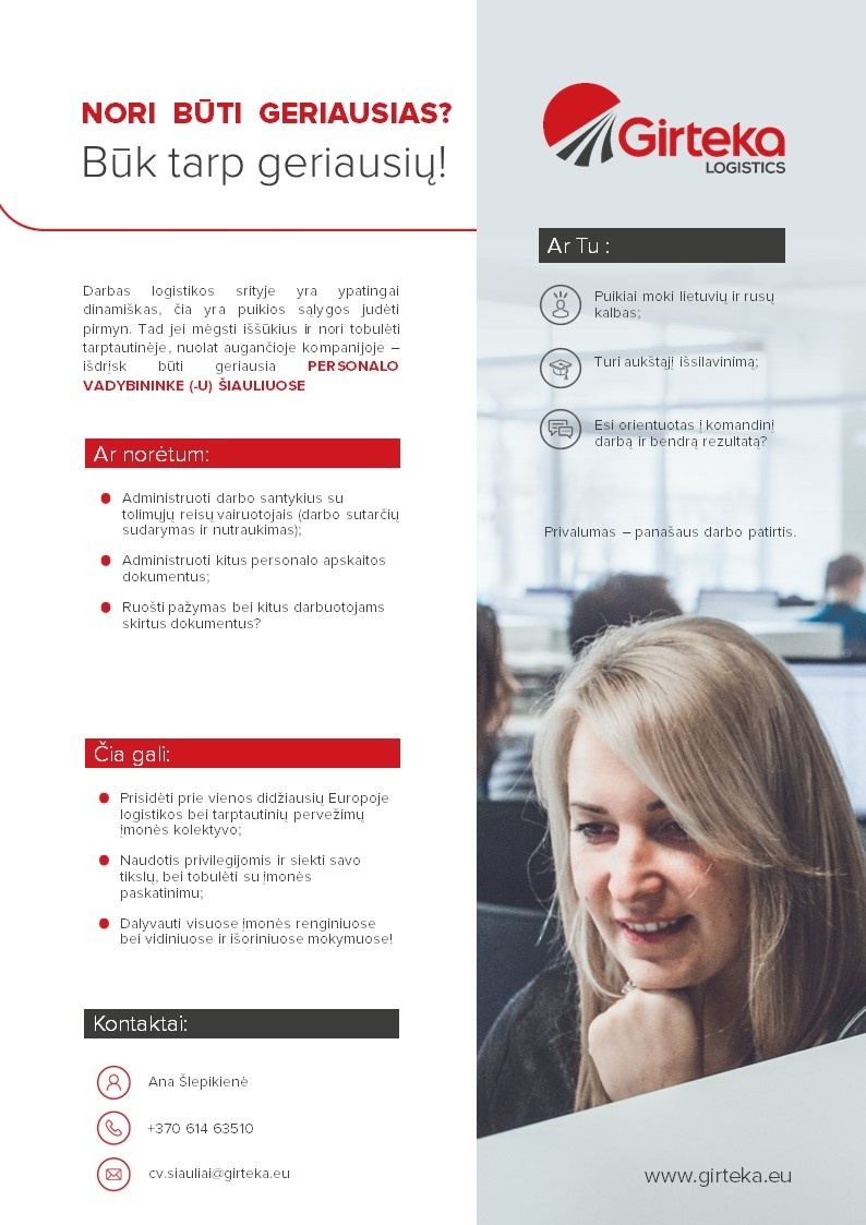 Girteka logistics, UAB Personalo vadybininkas (-ė) Šiauliuose