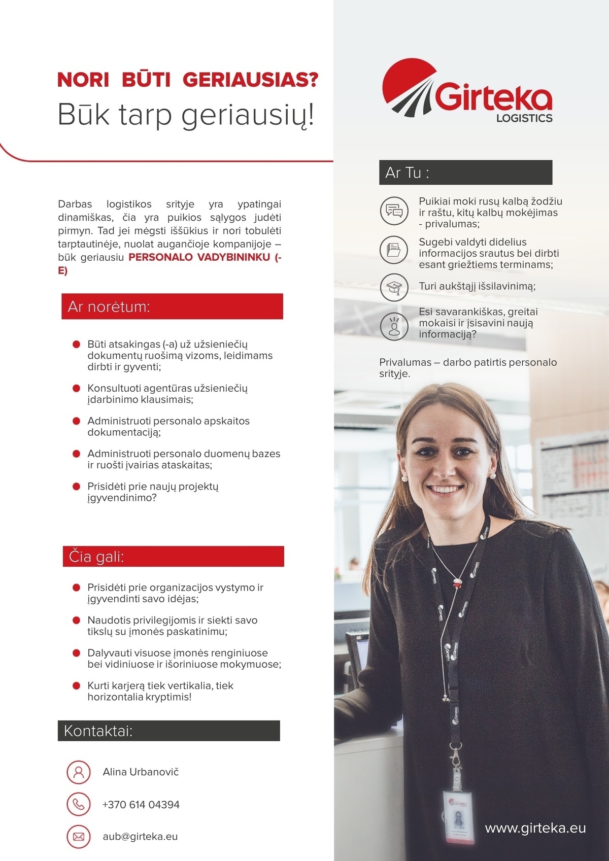 Girteka logistics, UAB PERSONALO VADYBININKAS (-Ė)