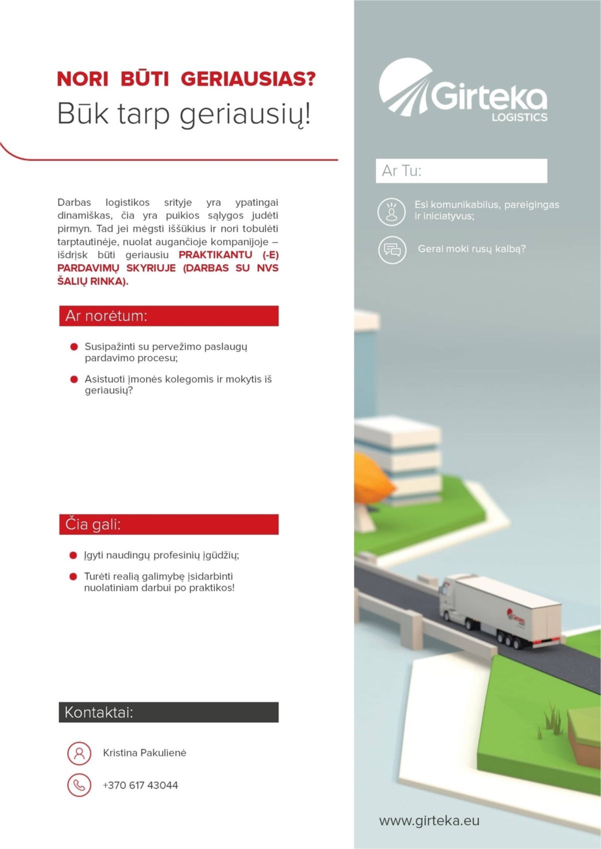 PRAKTIKANTAS (-Ė) PARDAVIMŲ SKYRIUJE (DARBAS SU NVS ŠALIŲ RINKA)