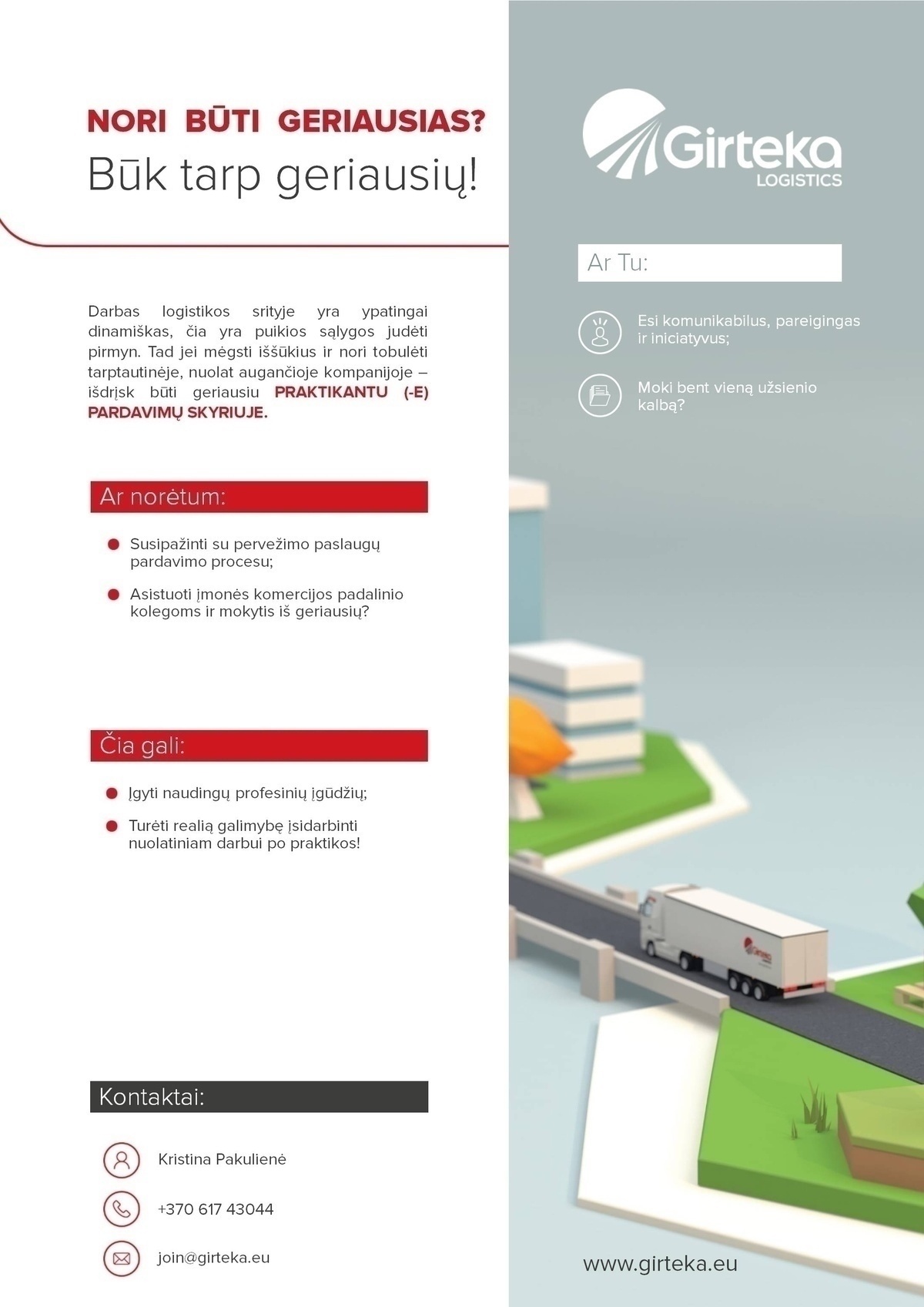Girteka logistics, UAB PRAKTIKANTAS (-Ė) PARDAVIMŲ SKYRIUJE
