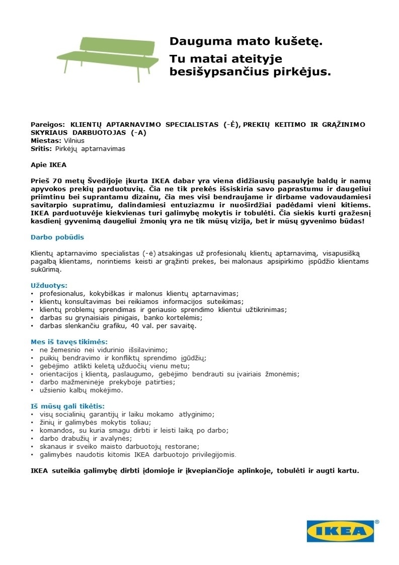 Prekių keitimo ir grąžinimo skyriaus darbuotojas (-a)