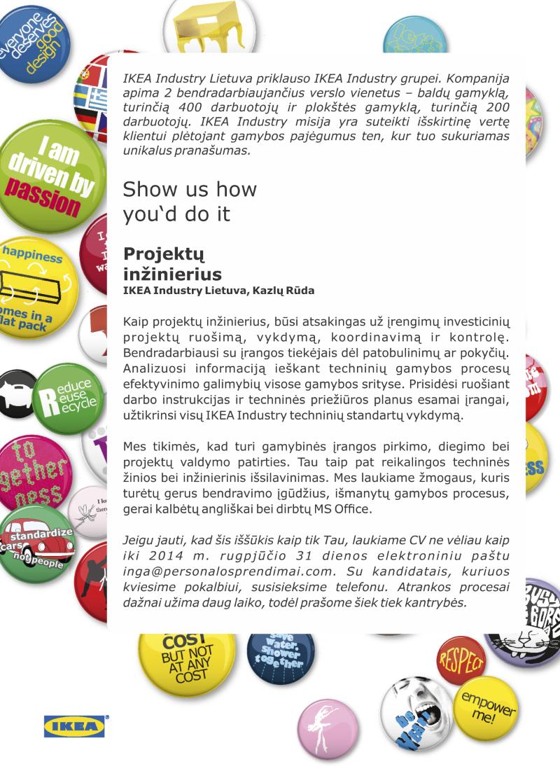 Ikea Industry Lietuva Projektų inžinierius (-ė) (IKEA Industry Lietuva)
