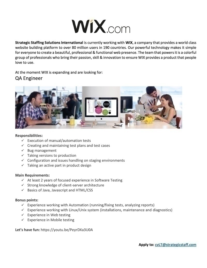 Strategic Staffing Solutions International, UAB QA Engineer