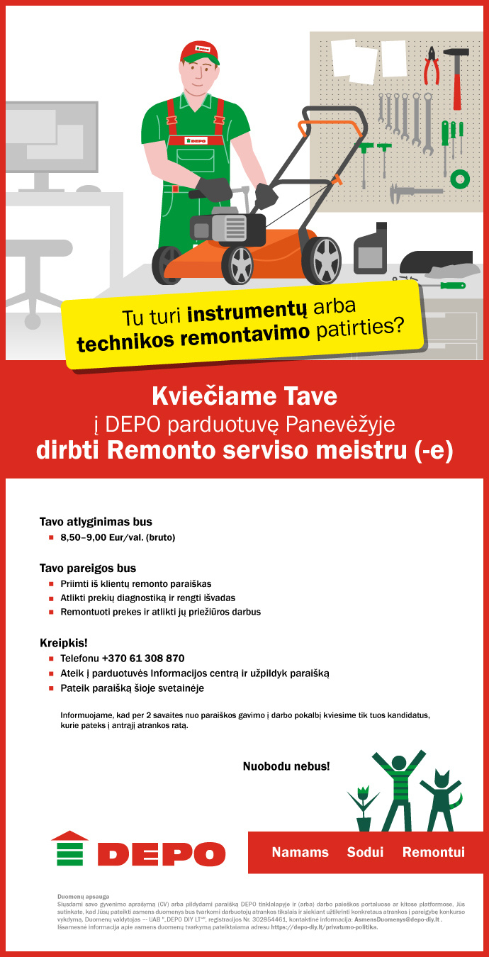• Tavo atlyginimas bus 8,50–9,00 Eur/val. (bruto)