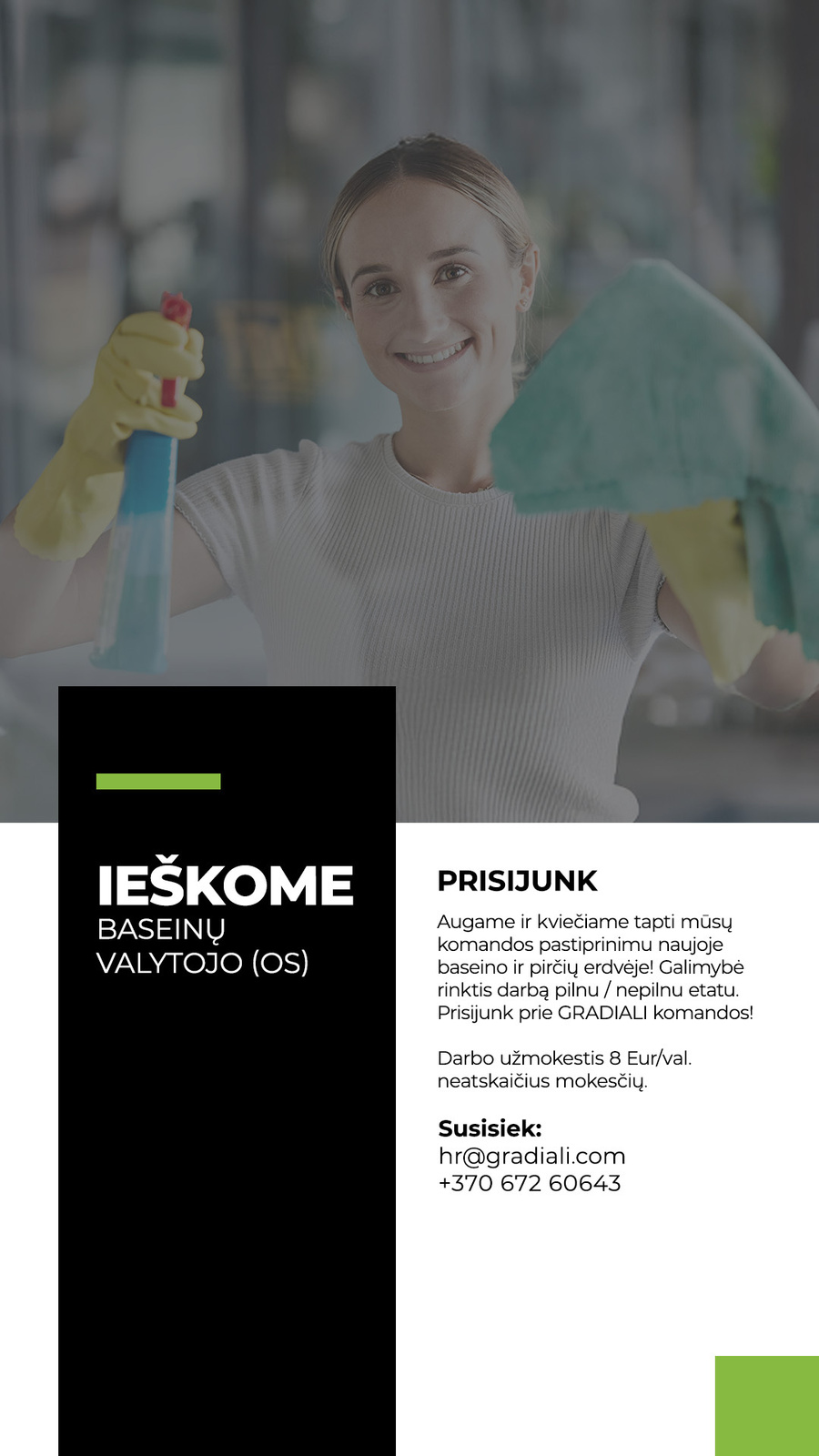 ATLYGINIMAS: konkurencingas darbo užmokestis ir kasmėnesiniai priedai už gerus darbo rezultatus.