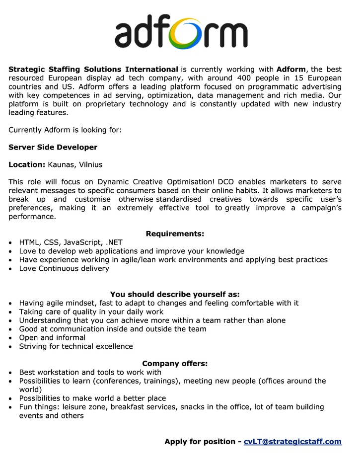 Strategic Staffing Solutions International, UAB Server Side Developer