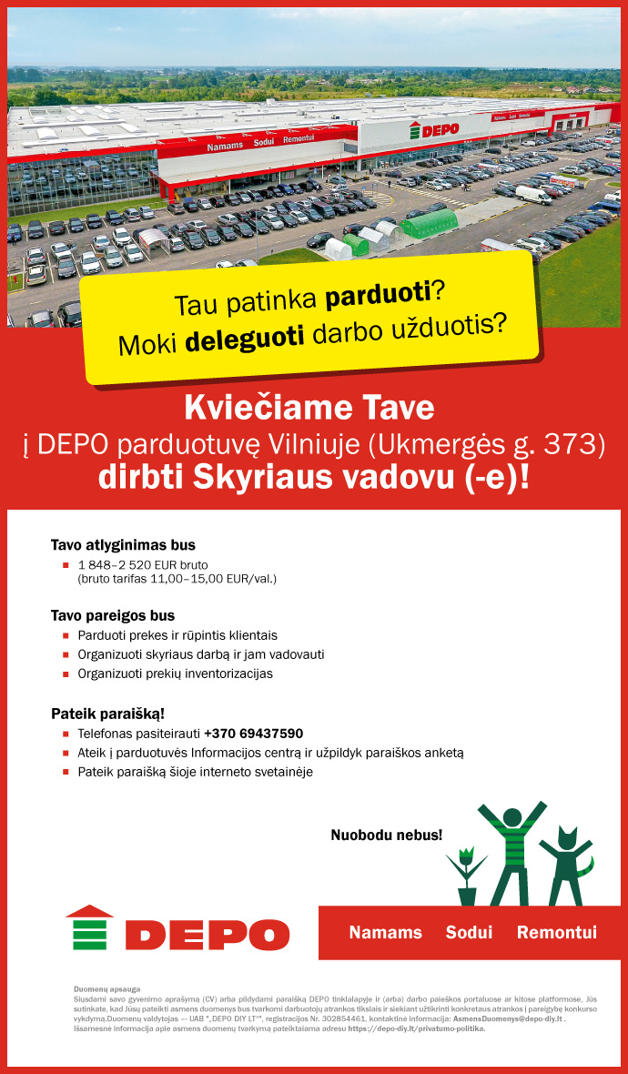 Skyriaus vadovas (-ė) Vilniuje (Ukmergės g. 373)