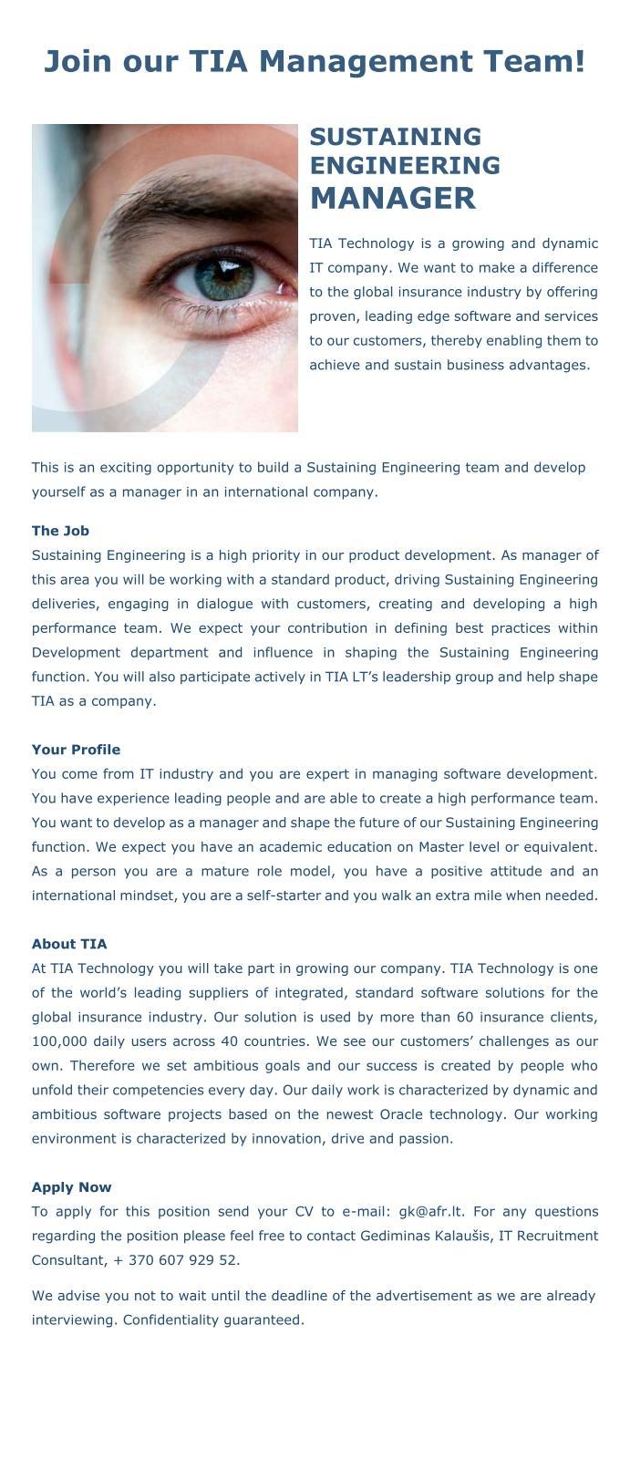 Sustaining Engineering Manager