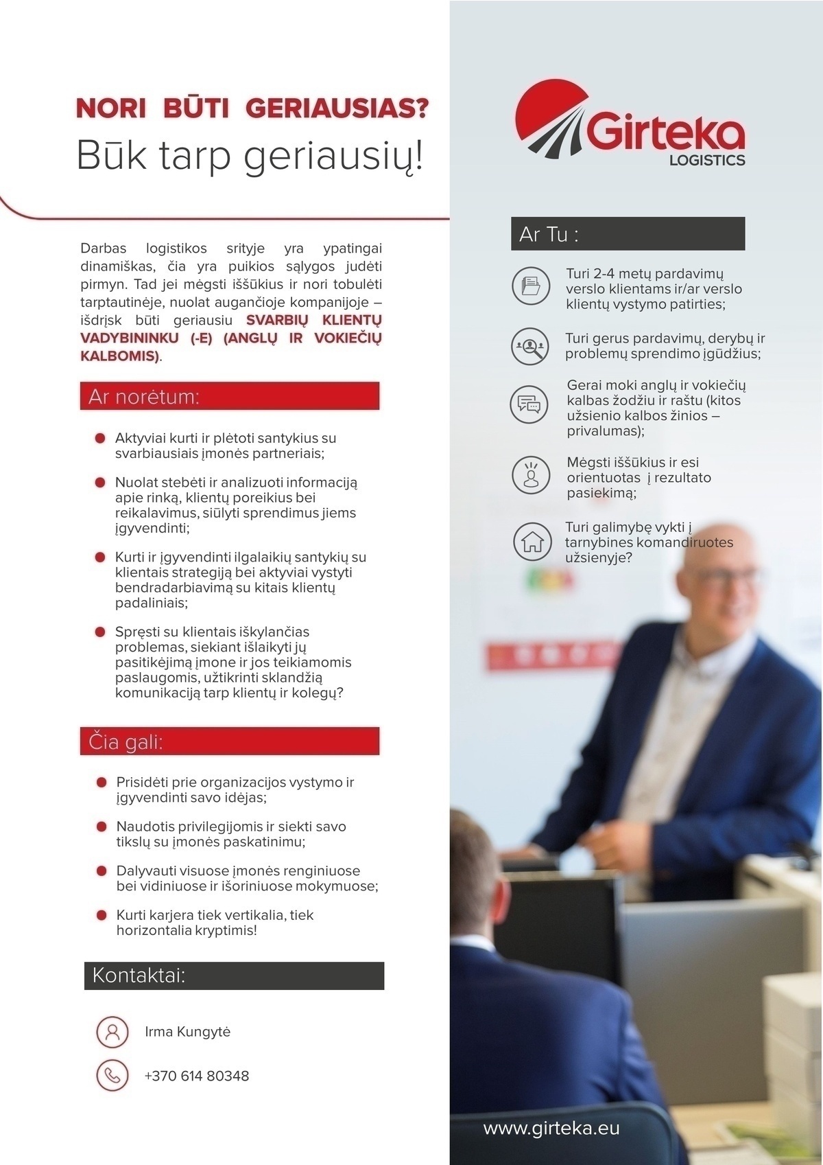 SVARBIŲ KLIENTŲ VADYBININKAS (-Ė) (ANGLŲ IR VOKIEČIŲ KALBOMIS)