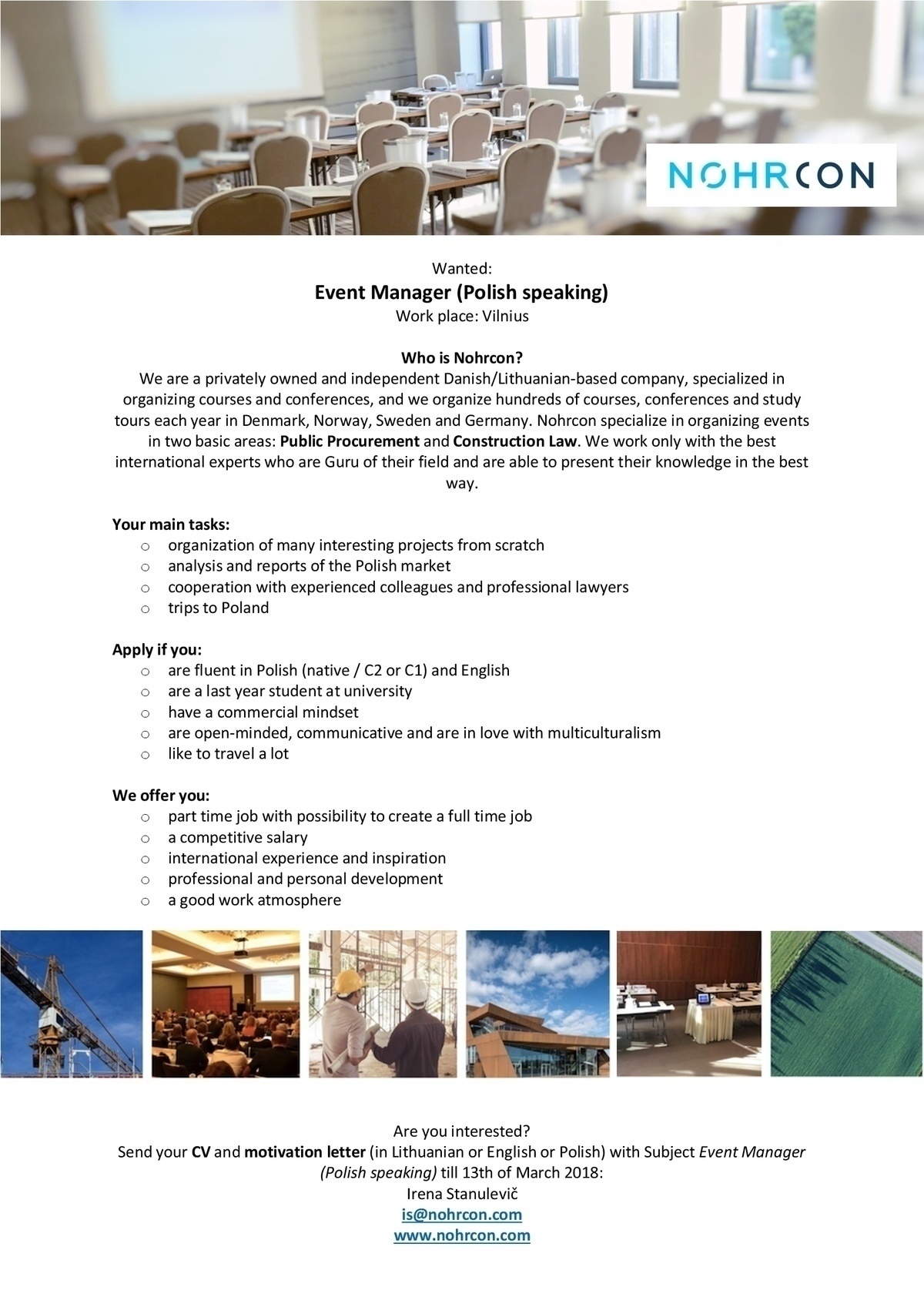 Tarptautinių konferencijų koordinatorius/-ė (lenkų kalba)/Event Manager (Polish speaking)